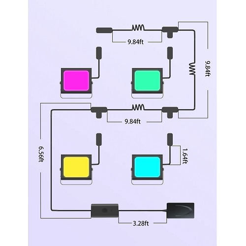 Geef je tuin meer kleur met deze prachtige set van 4 schijnwerpers. Je koppelt ze aan elkaar tot één lus en kan ze vervolgens in elke uiteindelijke richting laten schijnen. De schijnwerpers kunnen in elke kleur worden geconfigureerd en ook kunnen je ze allemaal individueel een andere kleur geven.