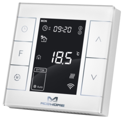 Slimme thermostaat voor het aansturen van elektrische (vloer)verwarming; bijvoorbeeld in de badkamer. Met ingebouwde vochtsensor.