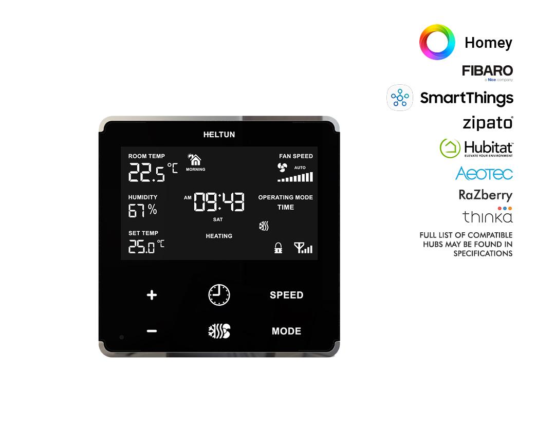 Z-Wave plus wandthermostaat is ideaal voor toepassing met fancoil thermostaten; waarbij je dus te maken hebt met koelen en/of verwarmen. De thermostaat beschikt over een strak LCD scherm en is voorzien van de nieuwste Z-Wave chip. Hij is beschikbaar in meerdere kleuren.